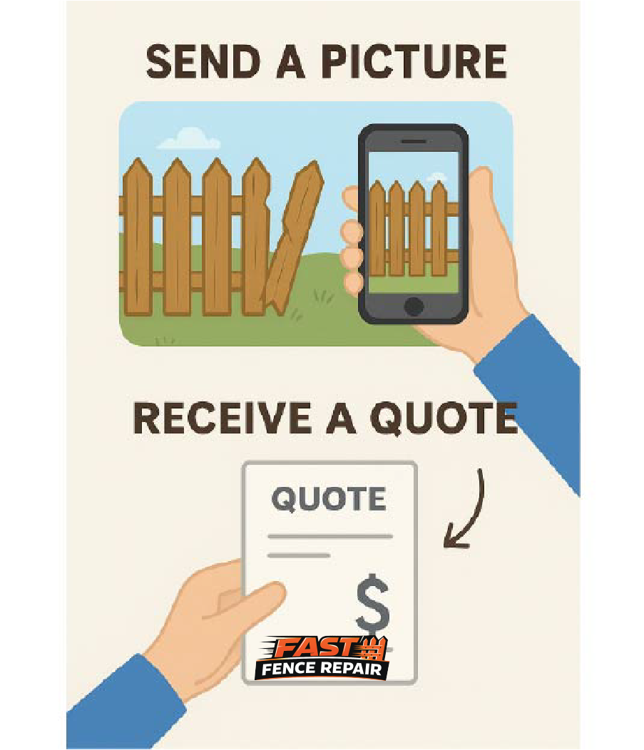 When Taking The Picture, Don't Get Too close:)) About 20ft Away from Fence to Get As Much of the Damage as Possible. Then, Just Send it With the Street Address, and We'll Send a Quote and Availability. **In some Cases, We Will Reach out With a Question or Two:))